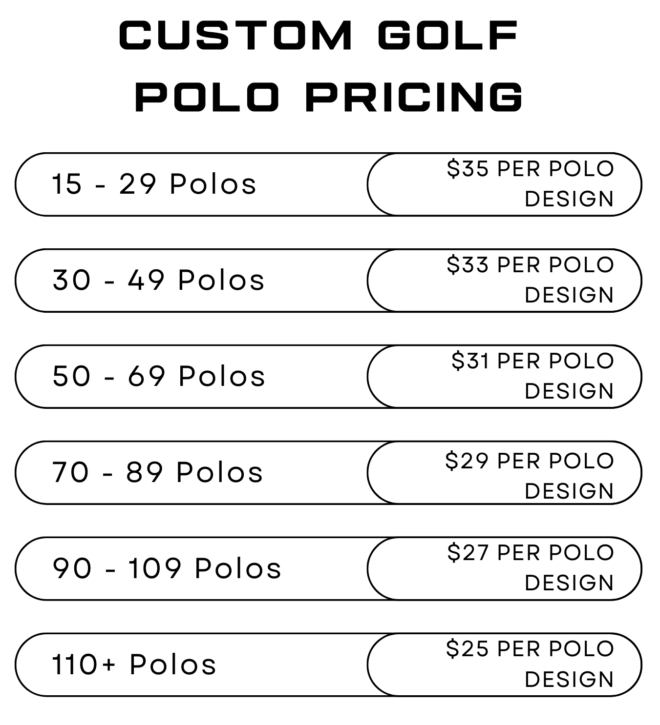 Get your custom polos for your golf course pro shop, golf trip, golf outing, college or high school golf teams!